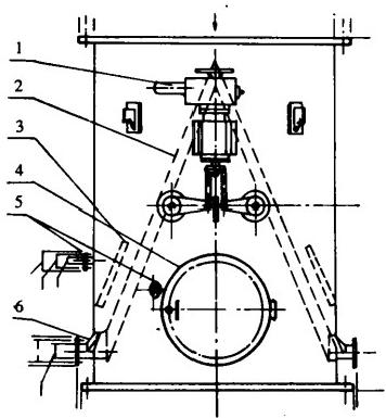 1—電動執(zhí)行機構2—網板3—導流板4—人孔5—測壓管6—膠球引出管