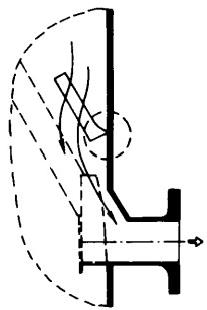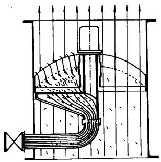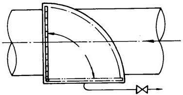冷卻水中含有各類雜物進入凝汽器后會堵塞管板及管口處,不但減少冷卻水流量、降低循環(huán)倍率,還阻礙膠球對冷卻管的清洗,在冷卻水泵前雖設有攔污柵和一次濾網,但往往不能把雜物清理于凈。為了確保水質清潔,還需在靠近凝汽器入口處加裝二次濾網來清理水中雜物。由于二次濾網處在凝汽器入口附近,其位置限制了它不能象一次濾網,攔污柵那樣占據很大的空間,尤其是在老機組改造項目中所給的許用空間小,只能在管道上的直段或利用彎頭的位置安裝二次濾網。而早期的二次濾網相當簡單直觀,如翻板式(見圖4),隨后出現了固定切向外旋式、帶導向蝶閥外旋式,……等型式的二次濾網。直到目前為止,上述各種型式的二次濾網包括原始的翻板式仍有電廠在使用,由于排污性能差,當二次濾網被雜物堵塞而不能排污沖洗時,只能停機人工清除雜物。嚴重影響了機組經濟效益。