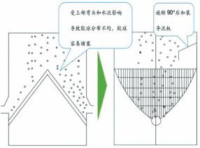 收球網一側收球口被膠球堵死;膠球回收管道布置不合理;