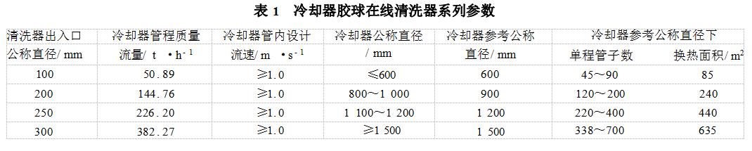 冷凝器自動在線膠球清洗裝置系列的主要參數見表1。值得一提的是該項清洗技術在煉油化工裝置中塔頂冷凝器系統的使用效果十分顯著,可免除生產過程中由于冷凝器結垢而引起的氣體介質冷凝效率下降、塔頂氣體壓力升高,進而影響裝置的安全生產和產品產量與質量等問題。