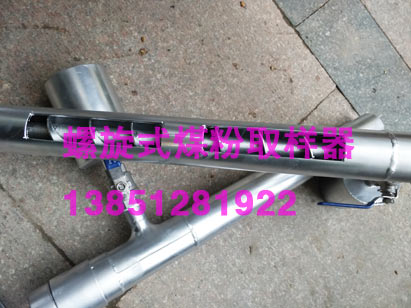 該螺旋式煤粉取樣器設計采用螺旋輸送原理,當煤粉沉落在取樣嘴中,利用外部的手柄或電動執行機構旋轉螺旋輸送裝置,煤粉將通過取樣管送到落粉管進入取樣瓶中。
