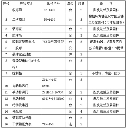 6.1每臺機組配1套膠球清洗裝置,1套膠球清洗裝置主要包含以下供貨項目: