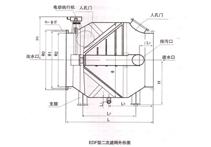 膠球清洗裝置系統二次濾網主要由濾網、外殼、蝸輪箱體、排污槽、傳動軸、排污口和電驅動等組成。