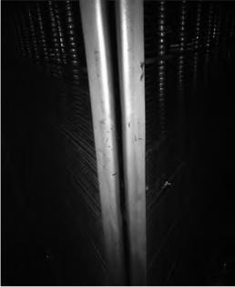 在機組C修中,通過液壓千斤頂對收球網網板進行初步固定,同時利用乙炔焰配合大錘敲擊進行網板形狀矯正,通過火烤、捶打和液壓裝置固定等矯正手段,使得修后收球網網板的中間間隙均小于2mm,如圖5所示,保證了運行期間膠球不會通過間隙漏至長江。